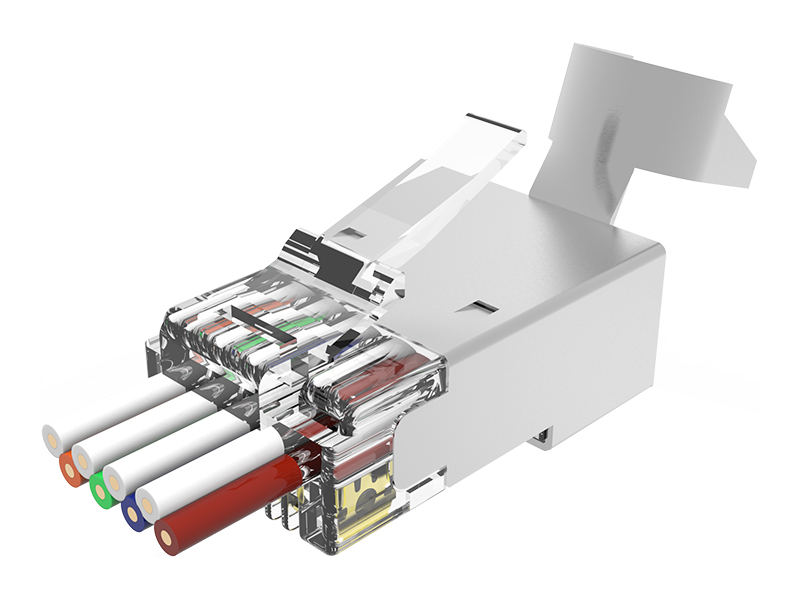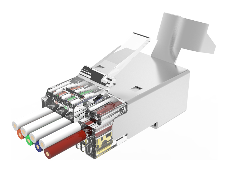 Высококачественная проходная вилка STP Cat.6A EXW со сквозным отверстием, простая в сборке.